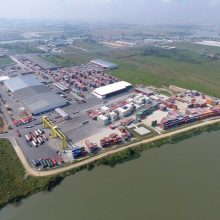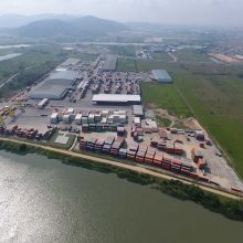 Estacionamento para 120 caminhões e 250 automóveis. Oficina para manutenção de containers com 1.200 m².