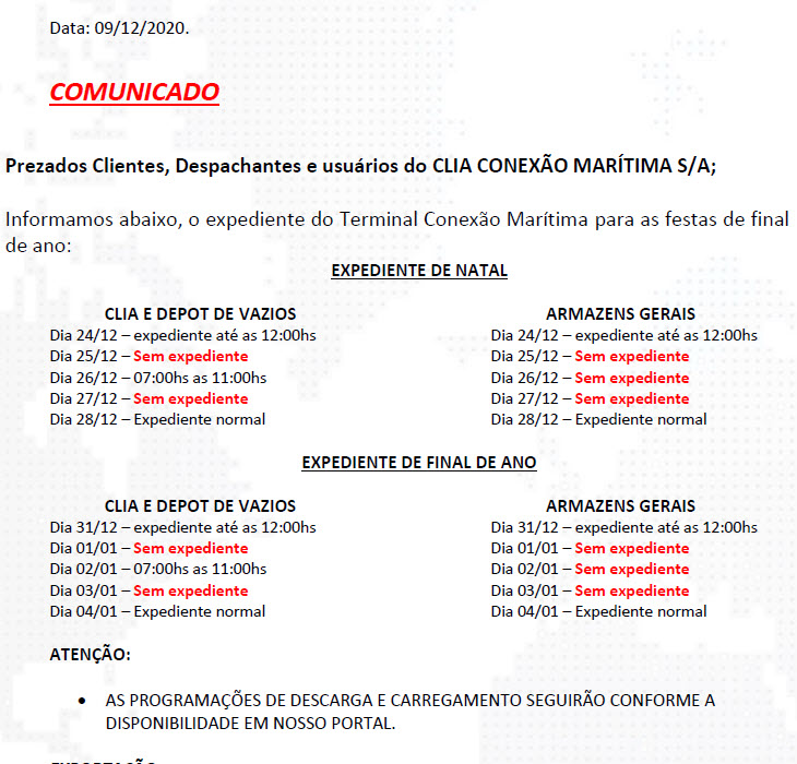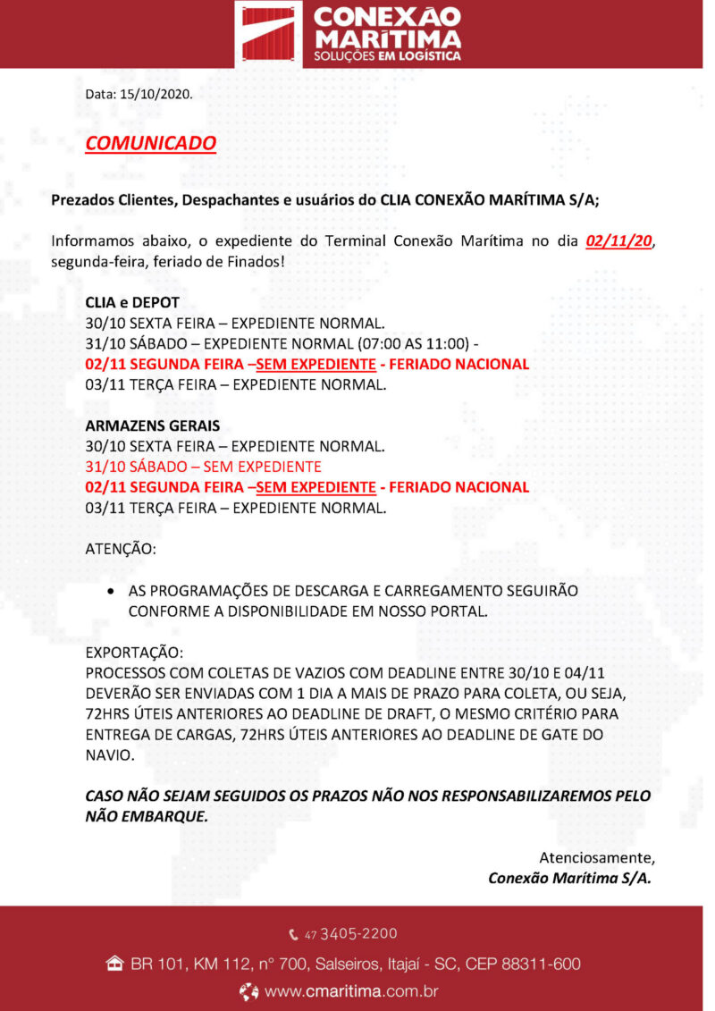 Tarifário Conexão Marítima – CLIA Atualizado em: 25/10/2025 – Vigência: Jun/2025 a Dez/2025